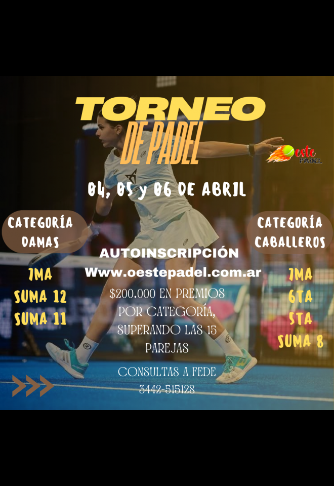 »» Evento: Torneo 4, 5 y 6 de Abril »» Localidad: Concepción del Uruguay »» Fechas: 04/04/2025 al 06/04/2025